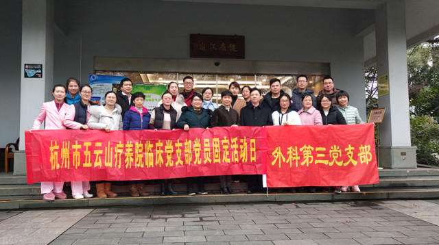 虽然天下着蒙蒙细雨,也抵挡不住前行的脚步。由杨红健主任、方群英护士长带队的省肿瘤医院外科第三支部党员一行12人,早早地来到了五云山疗养院,在党支部书记郑红霞和疗区主任钱玥的带领下,先后参观了疗区的红色驿站、支部小屋、文化长廊等党建场所,交流了支部党建工作,体验了疗养院沉浸式的中医慢生活养生文化,学习了正念呼吸。