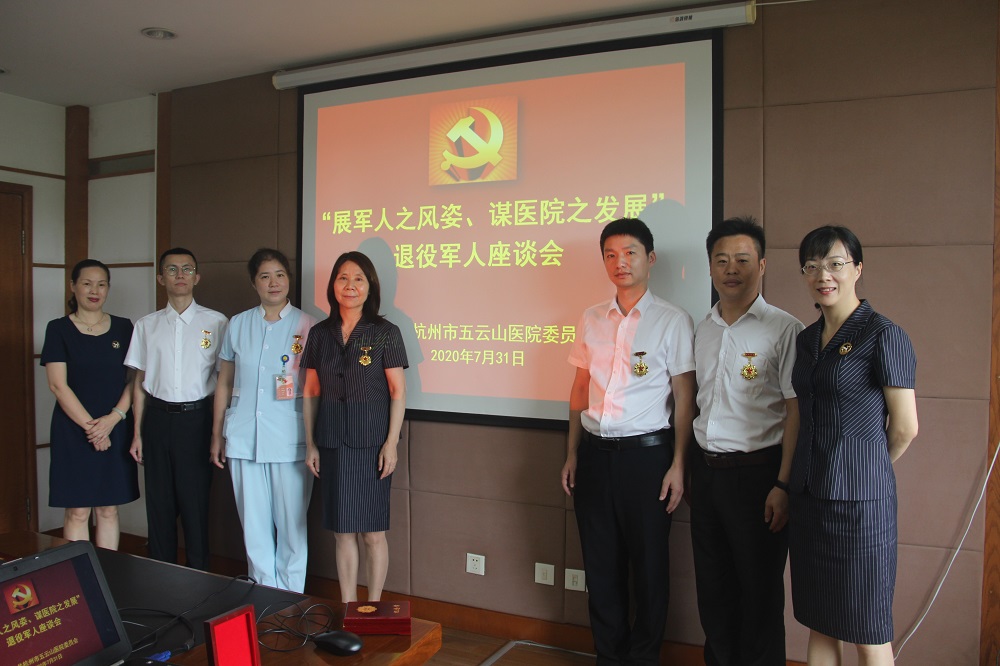 7月31日,在“八一”建军节前夕,杭州市五云山医院召开了转业军官和退役军人座谈会,我院党委书记、院长郭君萍、党委委员、护理部主任沈小华和陈玉秀、蔡学涛、刘琳、杨熙、俞恩涛5名转业军官和退役军人代表参加了座谈会,回顾峥嵘岁月,感怀改革变迁,共话医院发展。