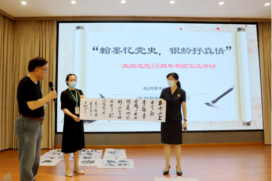 翰墨丹青,“艺”心向党。8月24日,杭州市五云山医院(杭州市健康促进研究院)召开“翰墨忆党史,银龄抒真情——庆祝建党100周年书画交流活动”。
